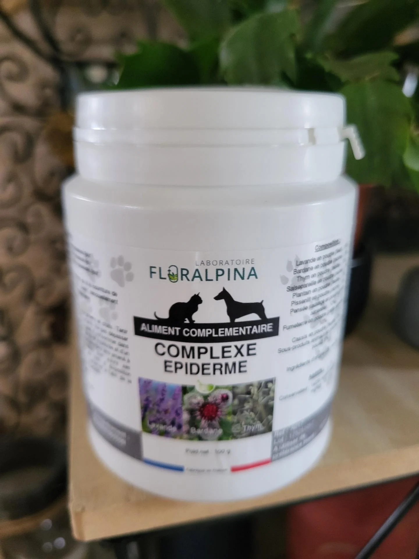 Le complexe Épiderme du laboratoire Floralpina est une préparation aux plantes pour chien ou chat qui st conçue pour soulager l'animal contre les démangeaisons, irritations, inflammations, grattage, problème du pelage et de la peau et apparition de pellicules. Contre les affections allergiques dermatologiques et les inflammations dues aux piqûres d'insectes. Lutte contre les effets dues aux allergies.